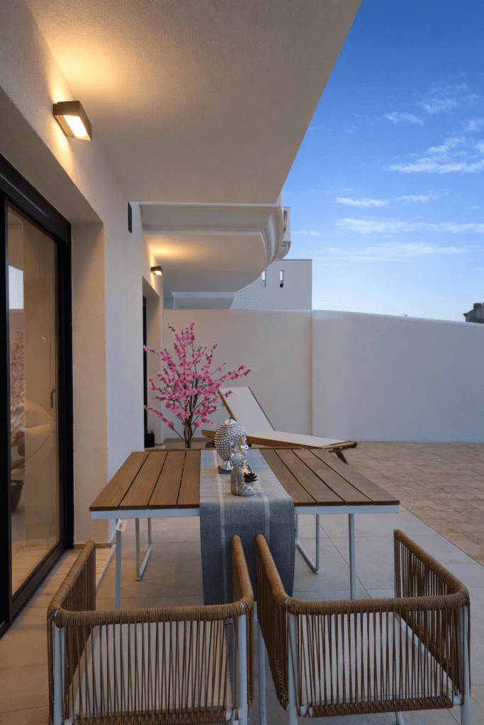 A project where construction quality, generous outdoor space and attention to detail come together to create a balanced, functional development perfectly integrated into a privileged Mediterranean setting.